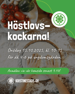 Välkommen med på en rolig och lärorik dag där vi lagar mat och bakar tillsammans! Under höstlovet blir vi riktiga Höstlovskockar som utforskar hållbar matlagning – vi lagar gott samtidigt som vi lär oss minska matsvinn och ta hand om våra råvaror på smarta sätt.