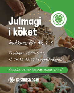 Fick du inte plats i förra bakkursen som ordnades i oktober? Nu kan du delta i årets sista bakkurs med jultema! Kom med och baka gott med oss inför julen, allt som vi bakar tar vi sedan med oss hem.