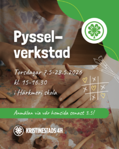 Välkommen med på vårens pysselverkstad i Härkmeri skola! Under träffarna tillverkar vi roliga spel att spela med kompisarna eller med familjen under sommarlovet. Vi bjuder på mellanmål vid varje träff.